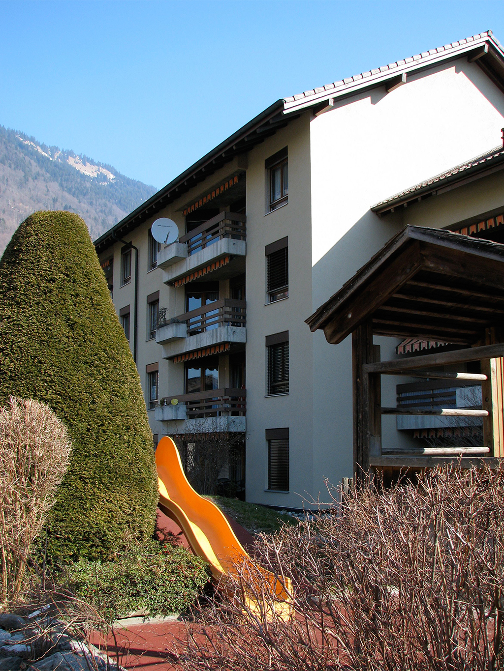 davon sind 18 Wohnungen invaliden- und altersgerecht gebaut und teilweise zusammengelegt und als Wohnheim vom Zentrum Mittengraben (ZEMI) Interlaken gemietet.